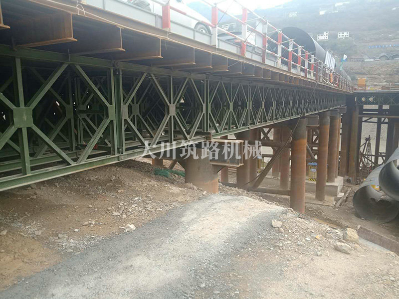 棧橋型號(hào):便橋采用(4×12m)+3m+9m+(2×12m)+3m,9跨貝雷架鋼便橋,橋梁全長(zhǎng)88.7m,橋梁寬度12m。